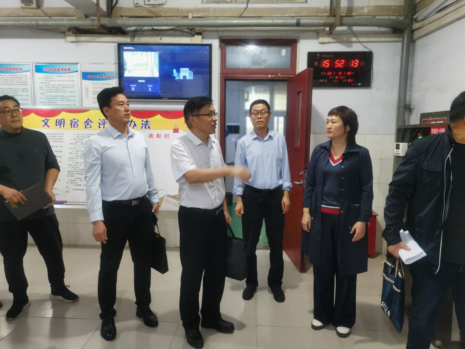 王祥国副组长一行先后来到学生宿舍楼、消防监控室、学生食堂、篮球训练大棚,对消防监控室值班值守、宿舍安全、食堂食品安全、篮球大棚设施设备等相关情况进行重点排查,对学校应对突发事件的应急预案进行了解、询问,对安全生产情况进行检查指导。