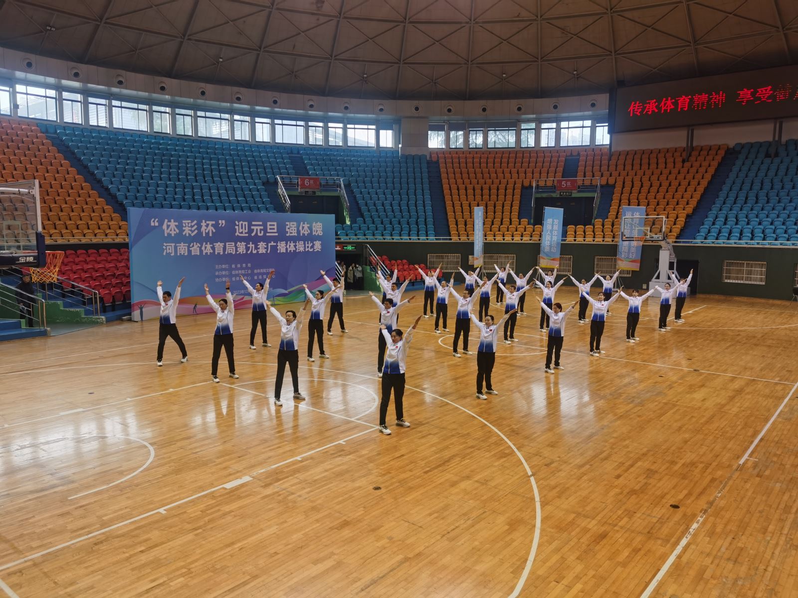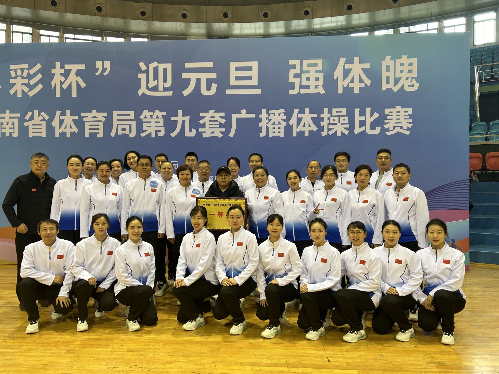 12月28日上午,由省体育局主办,省体育局工会、省体育局文明办承办的“体彩杯”迎元旦强体魄——河南省体育局第九套广播体操比赛在省体育场举行。局系统14支代表队300余名选手参加比赛。经过激烈角逐,省体育中学代表队在比赛中团结协作、顽强拼搏,最终脱颖而出,荣获比赛一等奖。