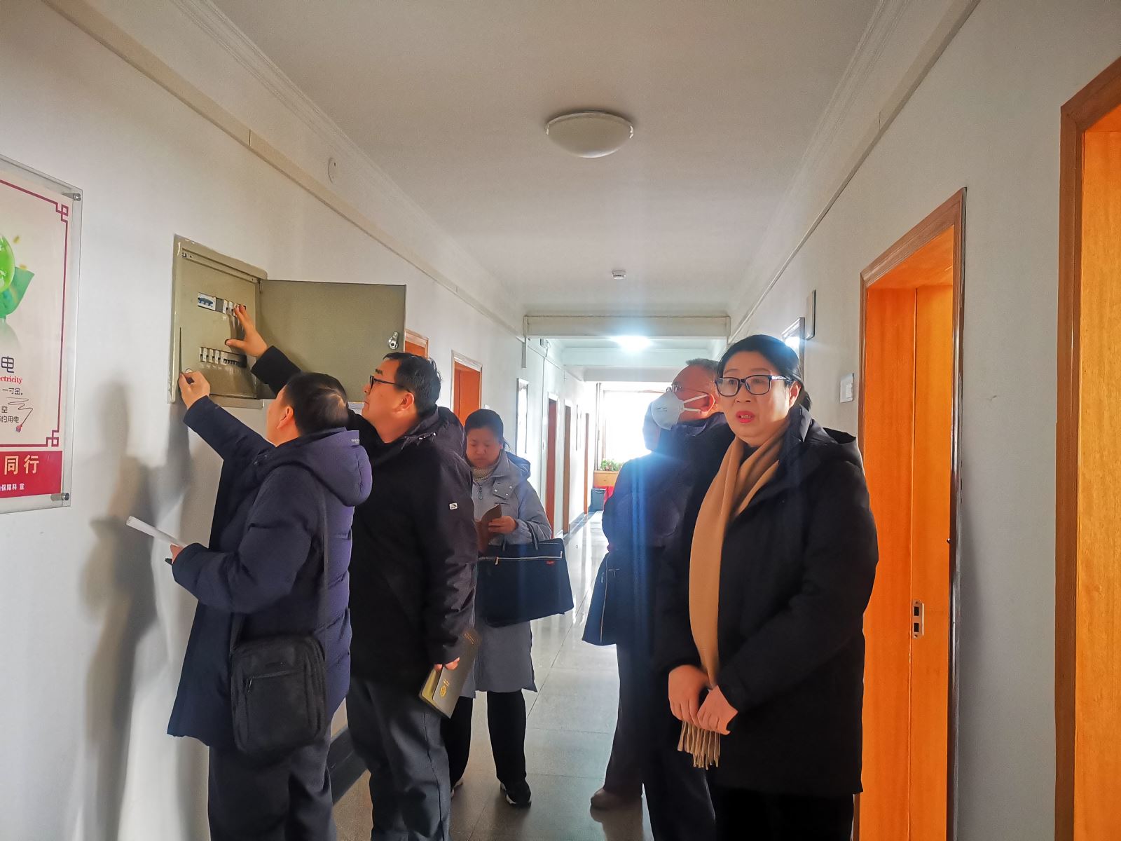 在现场检查督导阶段,校领导班子和相关科室负责人陪同检查组对学校重点区域和自查隐患点再次进行了检查。随组专家张永红全面梳理了学校的电力设施、电缆电线等安装情况,针对办公楼空气开关柜、热水器安装线路、食堂电器摆放、消防灭火器安放位置等隐患点提出了整改建议。