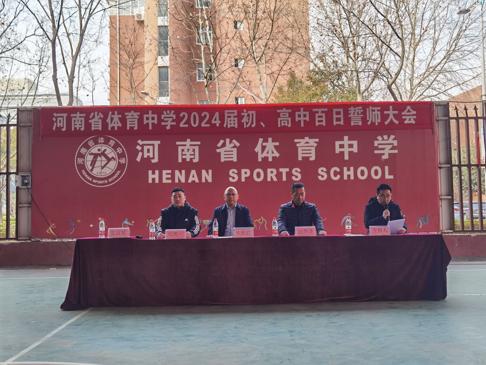 千帆竞渡,乘风破浪,砥砺奋进,圆梦六月。为营造浓厚的备考氛围,帮助学生树立自信自强的必胜信念,助力学子以高昂的斗志为梦想而战,2月28日上午,我校隆重举行2024届中高考百日誓师大会。校长宋振启、副校长赵华圣、学生科科长刘笑一、2024届初高三全体师生、初高三教练员代表参加了此次活动,大会由教务科王亚敏老师主持。