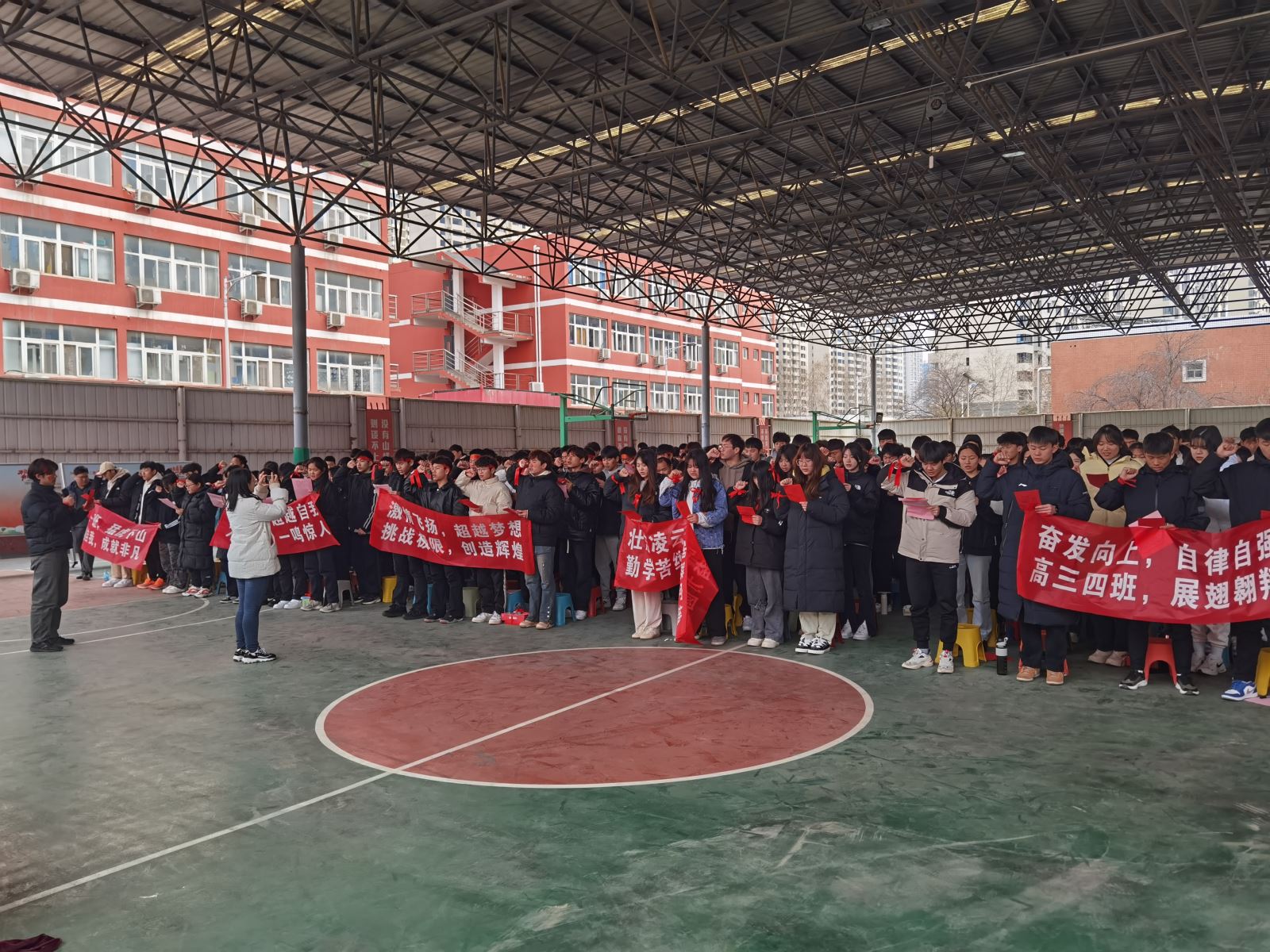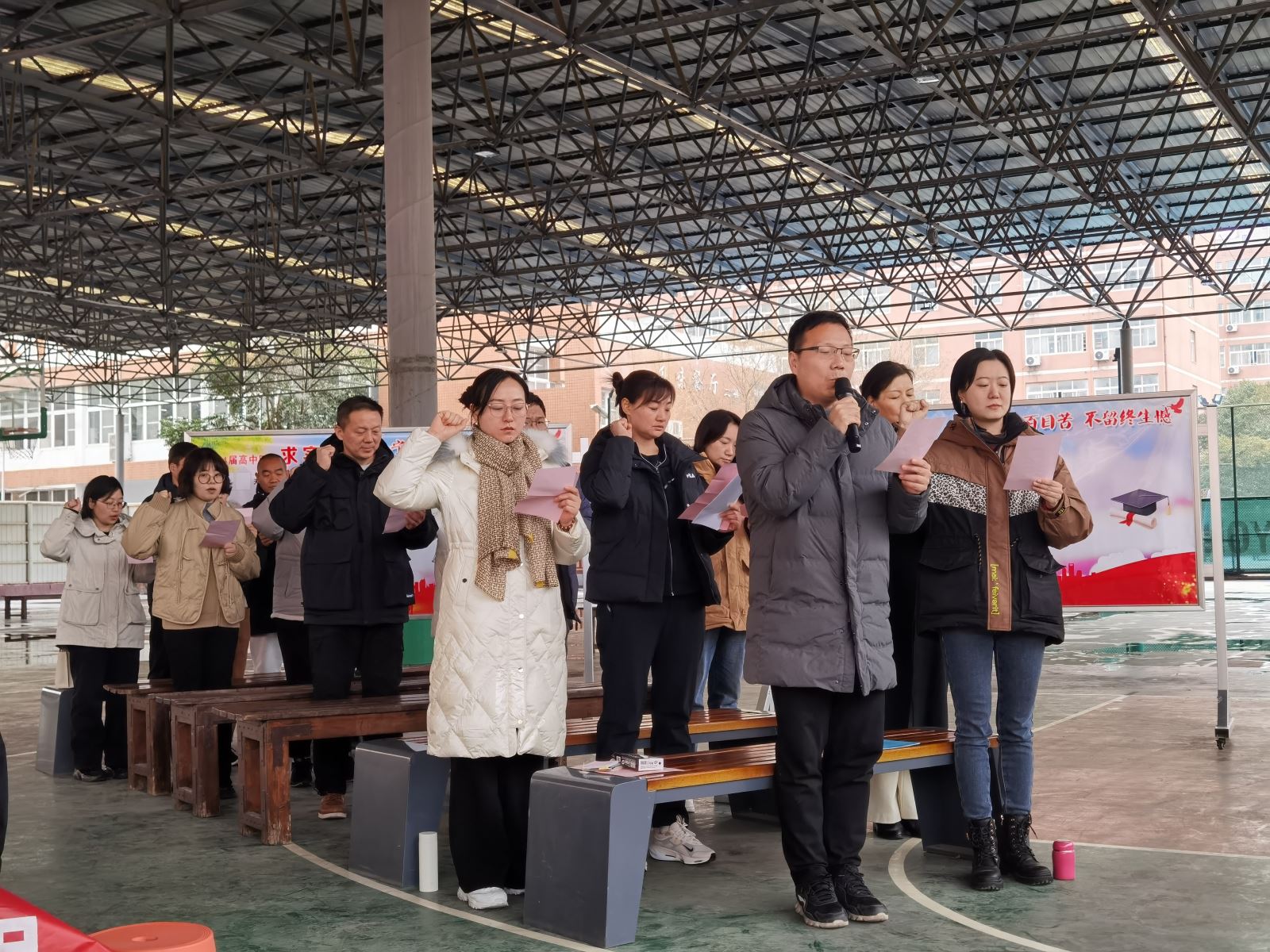 一百天的汗水,将收获六月丰硕的果实,一百天的拼搏,将嘹亮六月胜利的凯歌。随着大会的气氛愈发热烈,全体学生壮怀激烈地庄严宣誓,用响彻云霄的呼喊彰显青春蓬勃的朝气,表达高考必胜的决心。