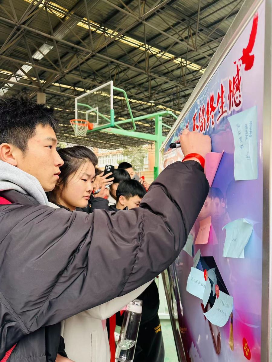 宋振启校长寄语初高三学子,他希望同学们有坚韧的学习毅力、有强烈的必胜信念、有积极的心态,努力拼搏。他鼓励全体师生,在备战中高考的一百天里,既要仰望星空,充满斗志,又要脚踏实地,心态平和,相信我能行,树立必胜的信心,用坚持、毅力谱写自己的华彩人生!
