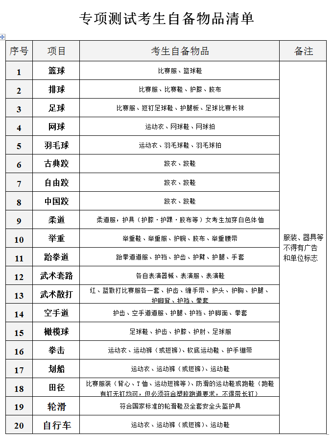 (三)考生检录后分配号码簿,号码簿别在考生前胸和后背,号码簿为考生测试期间唯一标识,直至下午专项技能测试结束。